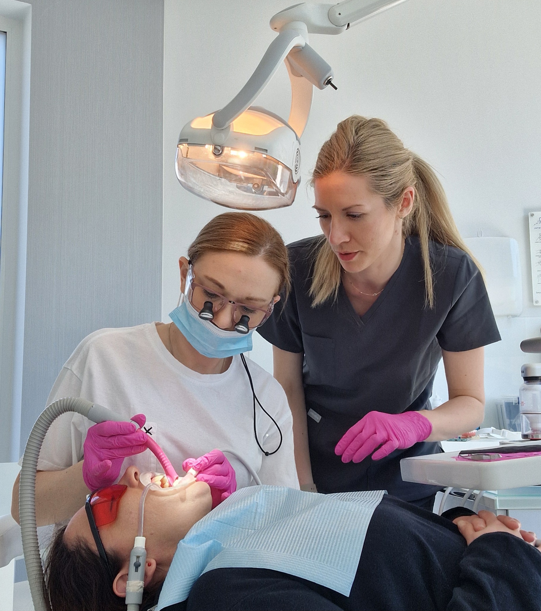 – asystowanie operatorowi podczas zabiegów w systemie pracy na 4 ręce podczas różnych zabiegow stomatologicznych