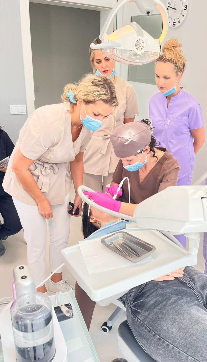 Podczas szkolenia każdy uczestnik pod okiem prowadzącej praktykujacej higienistki stomatologicznej wykona poszczególne etapy zabiegu (skaling, piaskowanie, zabezpieczenia oczyszczonej powierzchni).